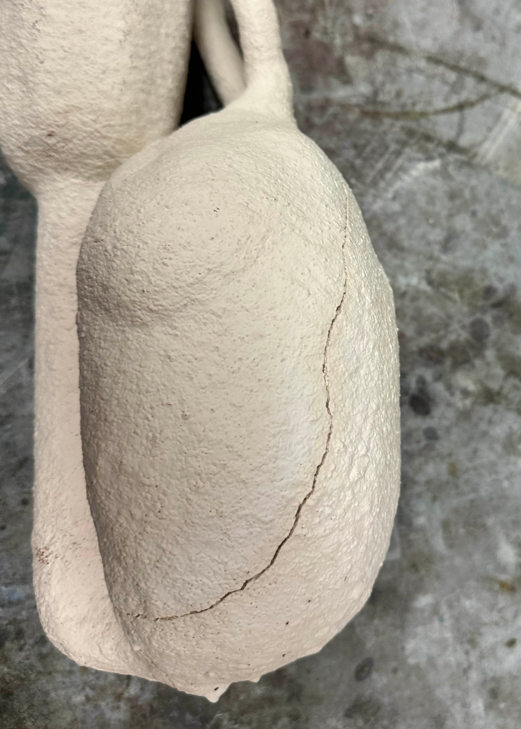 With my vitrified shell, I am almost ready to cast some metal. However, to make sure that my mold doesn't break apart (at the enormous crack) under the weight and pressure of the metal, I needed to first patch the crack with furnace patch or refractory cement. This applies much like body filler or spackle. After applying the cement, I hit it with a torch to quickly harden it.